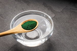 - Mélanger 1 cuillère à café de spiruline en poudre avec 250 ml d’eau ou de jus de fruits frais.